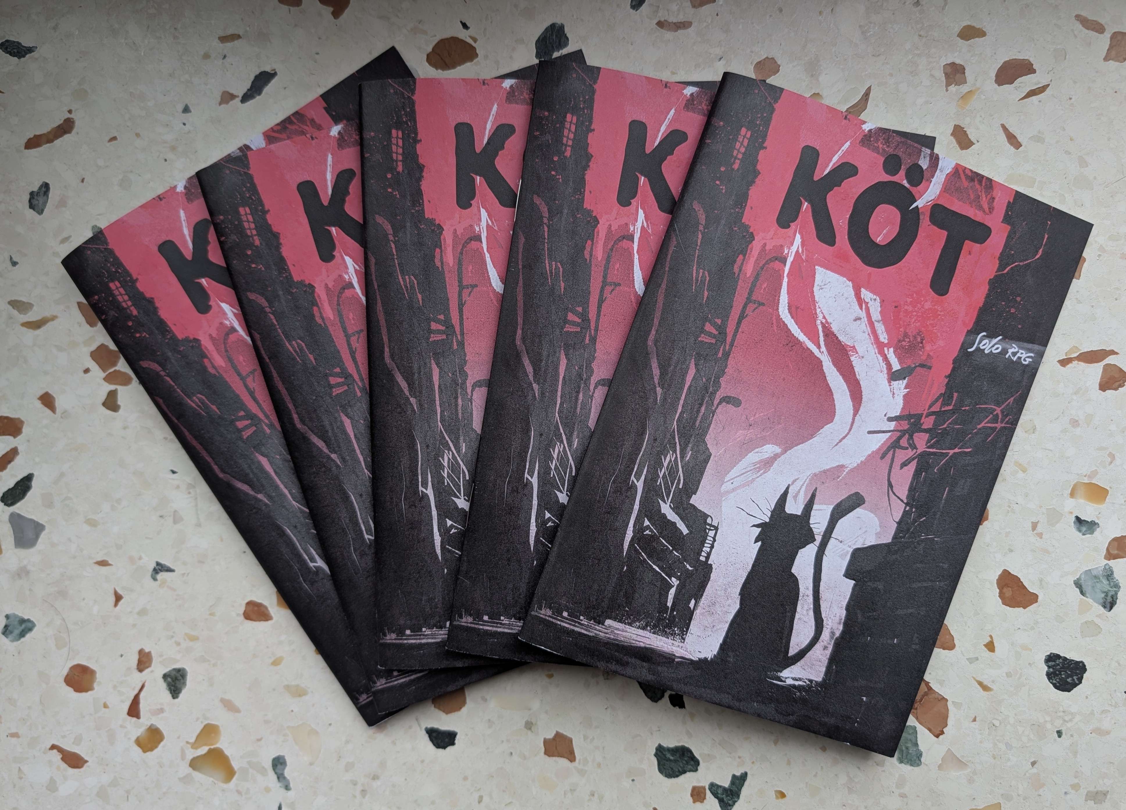 KÖT to solo RPG gdzie wcielasz się w kota dachowca walczącego o przetrwanie w mieście nawiedzonym obecnością istoty, która zaburza sen i zmysł orientacji. Nie podoba ci się to i jesteś zmuszony do przerwania odpoczynku w ulubionym legowisku. Twoim zadaniem jest odzyskanie miasta z rąk, łap lub macek istoty, która czai się gdzieś w pobliżu.